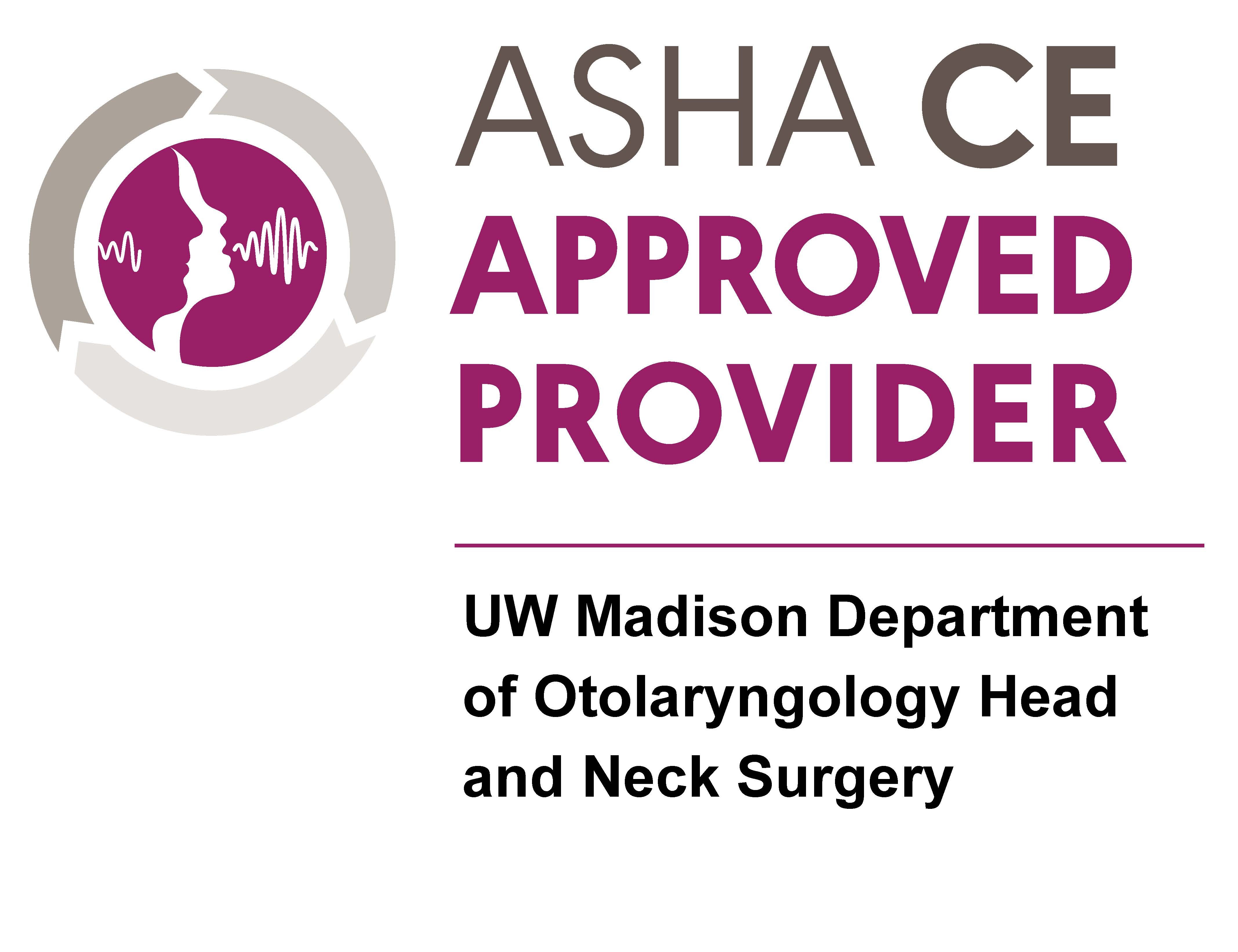 ![]() | American Speech-Language-Hearing Association (ASHA) This activity is offered for 0.50 ASHA CEUs (Intermediate level, Professional area). In addition to attendance, participants will successfully complete course requirements by submitting proof of learning form by June 3, 2026. If this information is not received by the deadline provided, participants will not be eligible for ASHA CE credit. Participants will also successfully complete course requirements by using course content as a means to self-reflect upon their practice patterns and how it impacts their patient care. |